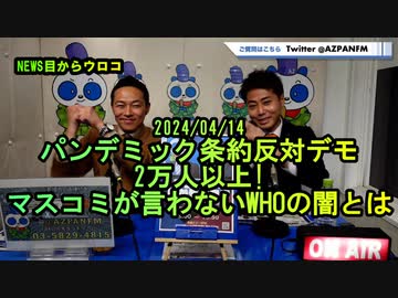パンデミック条約反対デモ2万人以上!マスコミが言わないWHOの闇とは2024/04/14鳥越アズーリFM【NEWS目からウロコ】