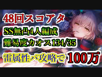 【ヘブバン】48回スコアアタック(カオス) SS無凸4人編成 難易度134/35 14ターン攻略でスコア100万 雷属性パ スコアタ【heaven burns red】