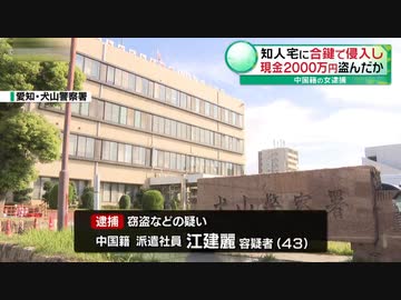 【中国籍の女を逮捕】 知人宅に合鍵を使って侵入し、現金2000万円を盗む 愛知県警