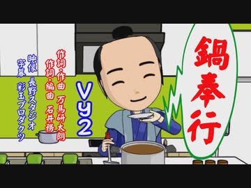 鍋奉行【VY2】作詞作曲/万馬研太朗、作詞編曲/石井務、映像/長野スタジオ、字幕/彩玉プロダクツ