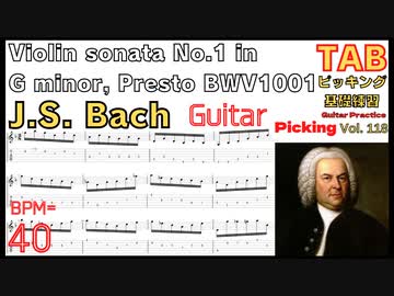 [ギターTAB] J.S. Bach BWV1001 Violin sonata No.1 in G minor, Presto - Classic