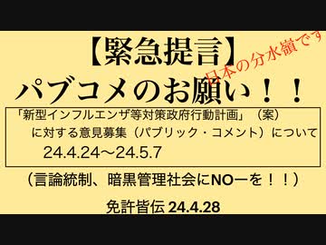 「新型インフルエンザ等対策政府行動計画」(案)に対する意見募集(パブリック・コメント)について(24.4.28)