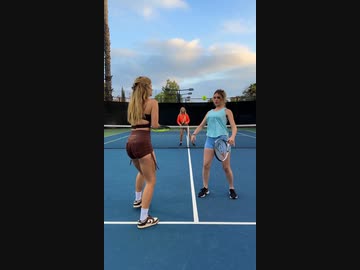 ホモと見る大胸筋でテニスボールを撃ち返す女