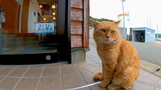 【ねこさん立入禁止】扉が開くのをジーッと待っている猫