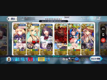 【FGO】まほよコラボ(魔法使いの夜コラボ)怪異大量発生クエスト「窟の中に潜む者 蝕ミ級(90)」3ターン周回編成例(水着モーさん&青子+フレキャストリア)