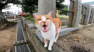 お寺で寝ていた猫をナデナデすると近くのカフェに誘導された