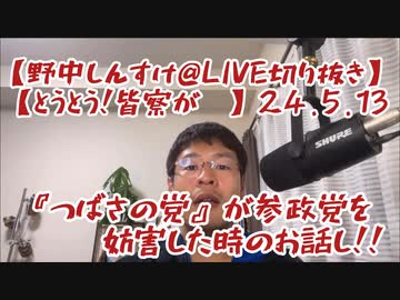 【野中しんすけ@LIVE切り抜き】参政党への妨害工作時の『つばさの党』動きを解説!24.5.13