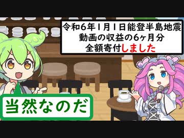 ニコ動の収益6ヶ月分全額寄付致しました。令和6年能登半島地震【うまいもん ずんだもん 番外編】