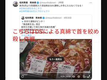 こちらはDSによる真綿で首を絞め殺し作戦 来月6月より防腐剤入り添加物まみれ漬物しか手に入らなくてなる!#DS日本人ぶっ殺し作戦