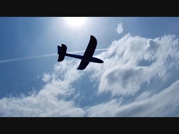 飛行機雲とグライダー・カイトと初夏の風、ダイソー300円グライダーを凧のように飛ばすテクニック