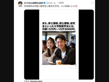 日本政府は中国人留学生に毎月15万円 いい加減にしろ おっちゃんは月71159円じゃど!! #外国人優遇制度度が過ぎる #移民で財務枯渇計画