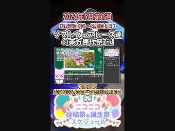 【#ニコニコ投稿祭】15/31『#ソフトウェアトーク達の東方原作祭2nd』2024年5月第1週のニコニコ投稿祭&誕生祭スケジュールを知ろう【#COEIROINK解説】#東方project #ボイロ