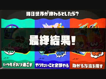 スプラ3 フェス 最終結果 24.05.19 「明日世界が終わるとしたら? いつもどおり過ごす vs やりたいこと全部やる vs 助かる方法を探す」