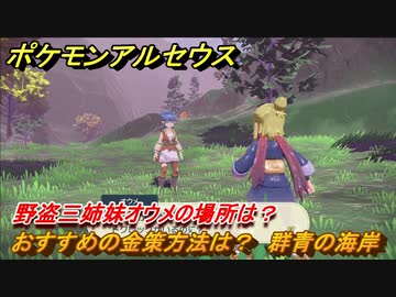 ポケモンアルセウス おすすめの金策方法は? 群青の海岸 野盗三姉妹オウメの場所は? #648 【Pokémon LEGENDS アルセウス】