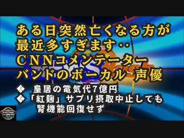 気になったニュース◆ある日突然亡くなる方が最近多すぎます‥CNNコメンテーター、バンドのボーカル 、声優‥◆「紅麹」サプリ、摂取中止しても腎機能回復せず◆皇居の電気代7億円