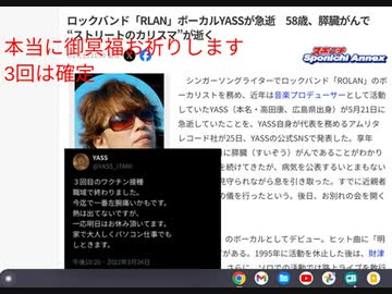 御冥福お祈りします 3回は確定 ロックバンド「RLAN」ボーカルYASSが急逝 58歳 膵臓がん #殺人癌促進毒ワクチンの犠牲者 #イベルメクチンとアビガンの併せのみで癌リスク軽減
