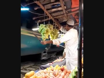ホモと見る電車の乗客からブドウを守る果物屋