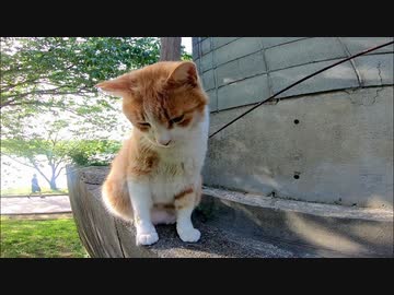 よく喋る野良猫が塀の上にいたのでナデナデしてきた