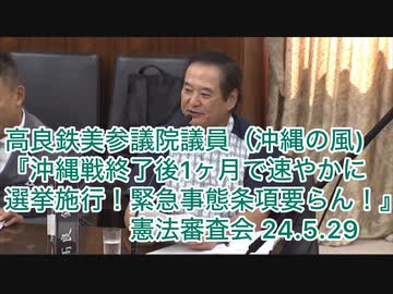 高良鉄美参議院議員(沖縄の風)『沖縄戦終了後1ヶ月で速やかに選挙施行!緊急事態条項要らん!』憲法審査会 24.5.29