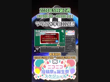 【#ニコニコ投稿祭】12/17『#やりこみ学会2024春』2024年5月第3週のニコニコ投稿祭&誕生祭スケジュールを知ろう【#COEIROINK解説】#実況プレイ #縛りプレイ #RTA