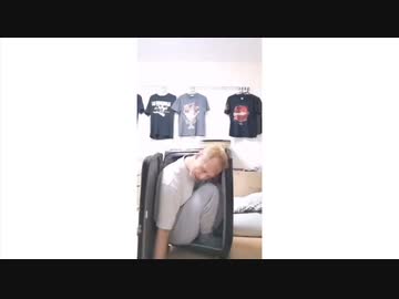 唯我さんスーツケースに入る練習をする