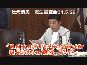 【感情抜きで聞いて】憲法審査会『東日本大震災をネタに議員任期延長詳える奴!間違ってるぞ!』辻元清美 24.5.29