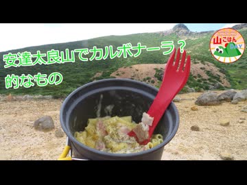 【ニコニコ山ごはんDAY】安達太良山でカルボナーラっぽいの作ったよ!