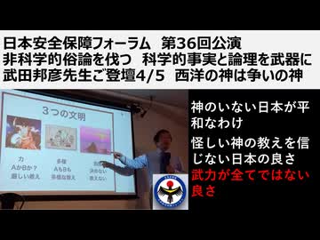 ④日本安全保障フォーラム 第36回公演非科学的俗論を伐つ 科学的事実と論理を武器に武田邦彦先生ご登壇4/5 西洋の神は争いの神