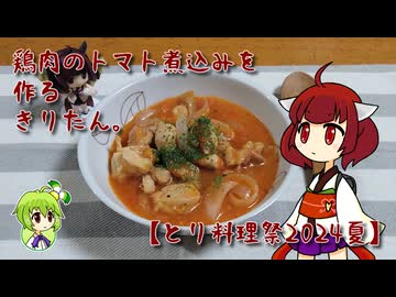 鶏肉のトマト煮込みを作るきりたん。【とり料理祭2024夏】