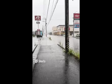 岐阜市内ゲリラ豪雨で傘さしても足元びしょ濡れ
