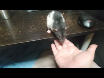 飼い主の手に飛び乗るドブネズミ 数回落下あり