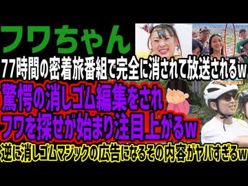 【フワちゃん】77時間の密着旅番組で完全に消されて放送されるw驚愕の消しゴム編集をされフワを探せが始まってしまうw逆に消しゴムマジックの広告になるその内容がヤバすぎるw