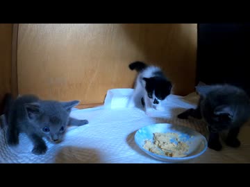 母乳を選ぶ子猫と離乳食を選ぶ子猫「末っ子が初めて食べた!」残るは長男だけ