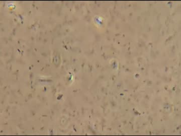 ファイザー枠沈(何回目かは不明)の中身の顕微鏡観察⇒大量の黒っぽい異物や発光する異物が確認される