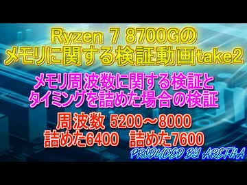 Ryzen 7 8700Gのメモリに関する動画take2 5200~8000 詰めた6400 詰めた7600