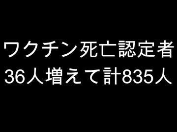 ワクチン死亡認定者 36人増えて計835人