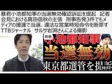暴君小池都知事の当選無効確認訴訟を提起 記者会見における真田信秋の主張 刑事告発3件でもメディアの援護で当選、違法な営業時短命令を断罪す