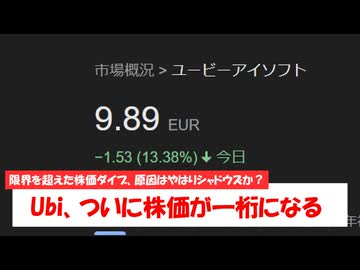 【Ubisoft】株価ダイブ再び!Ubisoftの株価が一桁ユーロ台へ突入!!【1分ニュース】