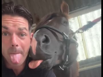 ホモと見る舌遊びが大好きなウマ