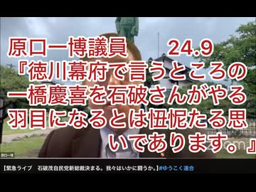 原口一博議員『徳川幕府で言うところの一橋慶喜を石破さんがやる羽目になるとは忸怩たる思いであります。』24.9
