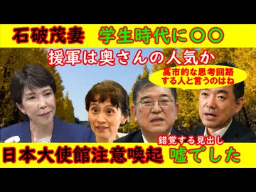 【石破茂】学生時代に妻へ告白したら「あなたの〇〇が嫌い」と言われていた「橋下徹」高市的な思考回路はダメだ!【在中日本大使館】「日本人よ注意せよ」と発信も騙しだった