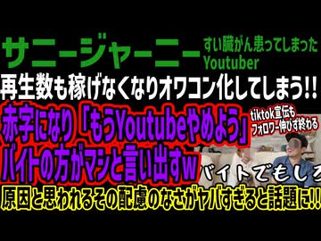 【サニージャーニー】再生数も稼げなくなりオワコン化してしまう!!赤字になり「もうYoutubeやめよう」バイトの方がマシと言い出すw原因と思われるその配慮のなさがヤバすぎると話題に!!