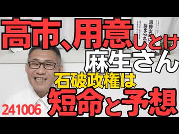 麻生さん「高市、用意しとけ。石破は1年もたないかもしれない」石破政権は短命に終わると予想している模様「仲間を作れ、飲み会に行け」具体的な指示も 241006
