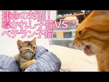 運命の対面!ムギワラ子猫vsベテラン子猫