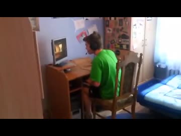 ゲームに負けてキーボードとモニターを破壊する少年(英語翻訳)