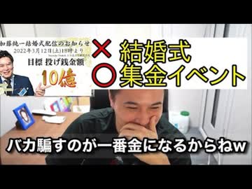 【速報】力口藤糸屯一の結婚式、ドワソゴがバックの集金イベントだったことが判明して炎上!!【2022/03/12】[ホモと見るかっさんまとめ]