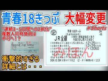 【超超衝撃発表】青春18きっぷが”連続3・5日間への2択化”と複数人同時使用は不可へ!?衝撃的すぎる詳細とは・・・【青春18きっぷ】【ゆっくり解説】#Shorts