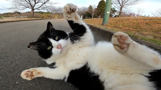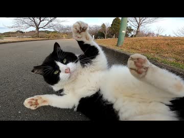 撫でると時々急にゴロンと転がる野良猫がカワイイ
