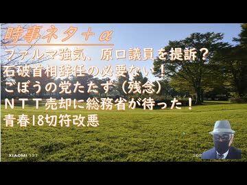 ファルマ強気、原口議員を提訴?(強気の裏に国と一緒だから?) 石破首相辞任の必要ない! ごぼうの党たたず(残念) NTT売却に総務省が待った!村上総務大臣の決断! 青春18切符改悪【アラ還・読書中毒】