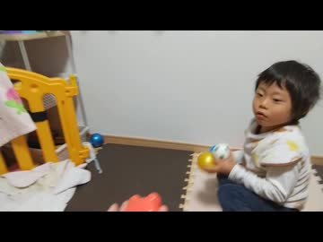 熱心にボール遊びに全集中する3歳児男の子(発達障害(知的障害)-自閉性スペクトラム症)を見守る姉とパパ